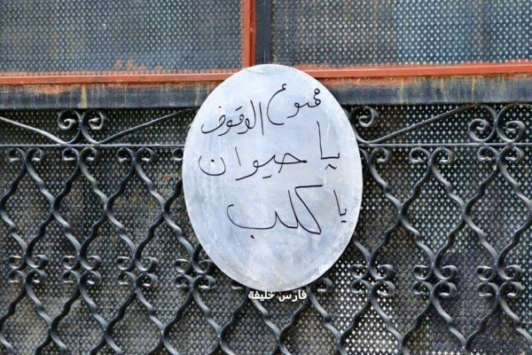 رصدت عدسة الزميل المصور الصحفي فارس خليفة "العبارة" المرفقة وقد كتبها احد المواطنين على باب "كراج" بيته منعا لاصطفاف مركبات الاخرين امام منزله .. نعتذر من السادة القراء لمحتواها لكن نترك التعليق لكم .
