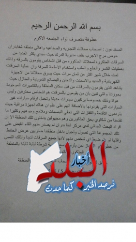 وأوضح التاجر انه قام بكتابة عريضة بتوقيع عدد كبير من التجار لتقديمها الى الجهات المعنية و المسؤولة ومناشدة مديرية الامن العام للإسراع في حل لغز هذه السرقات واكتشاف الفاعلين وتقديمهم للقضاء