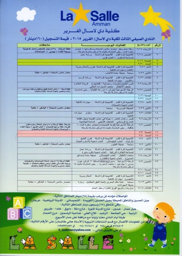 كلية دي لاسال تكشف البرنامج الخاص بالنادي الصيفي الثالث 2015 للفئات العمرية من 5 الى 13 عاما