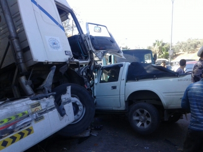 وقع حادث سير مروع في منطقة نزول صويلح البقعة تسبب بوقوع 17 اصابة تم اسعافهم الى مستشفى الامير الحسين بن عبدالله في عين الباشا.
