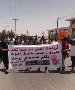 قام عدد من المواطنين بأغلاق طريق رحاب - المفرق احتجاجا على تجاهل البلدية في وضع مطب صناعي في تلك المنطقة بعد ان تكررت عمليات الدهس من قبل المركبات والتي راح ضحيتها عدد من الاطفال الابرياء