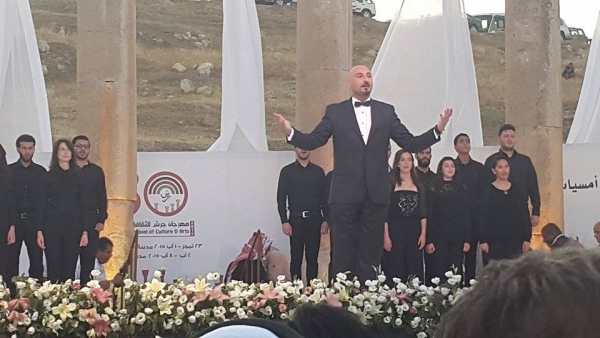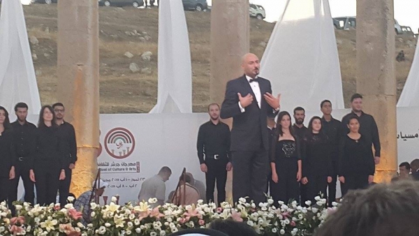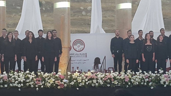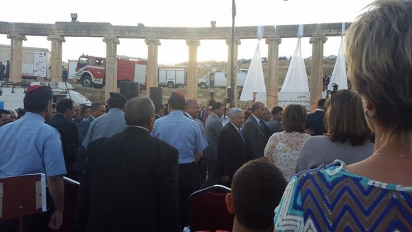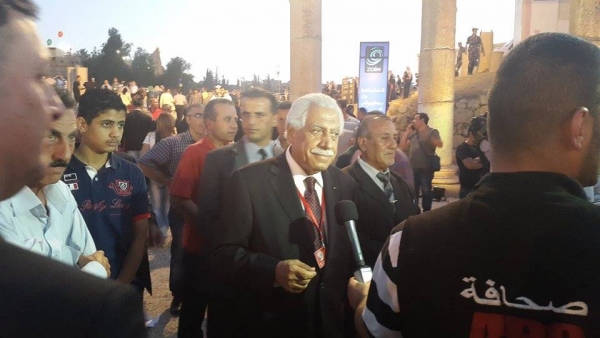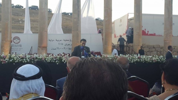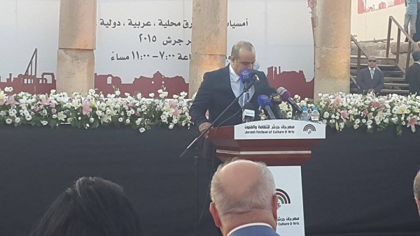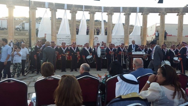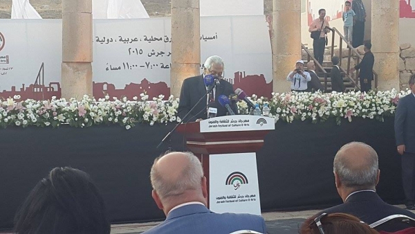 تلى ذلك كلمة سعادة رئيس البلدية جرش الكبرى الدكتور علي قوقزة كلمة أكد فيها ان الاردن بقيادته الهاشمية الراسخة الحكيمة استوعب الحاضر وضروراته وها نحن اليوم نحتفل بمهرجان جرش الذي استطاع ان يشق طريقه نحو العالمية لنصنع البهجة والسعادة في قلوب كل العرب عبر فعالياته التي ترسم لوحة ثقافية وتراثية وفنية هي الاجمل والأبهى .