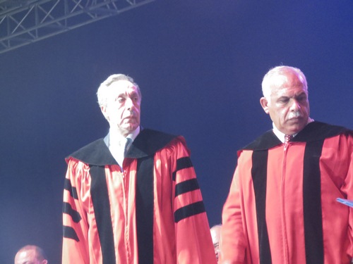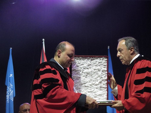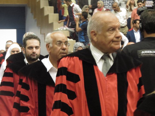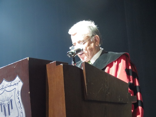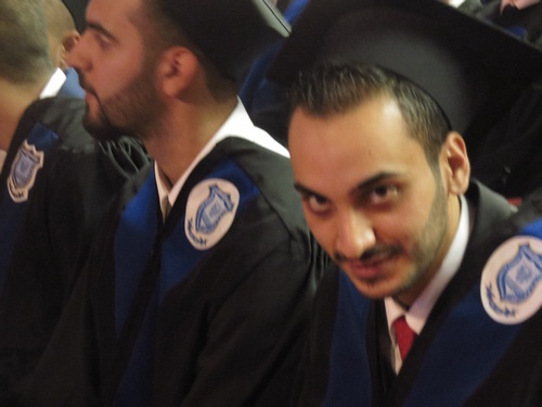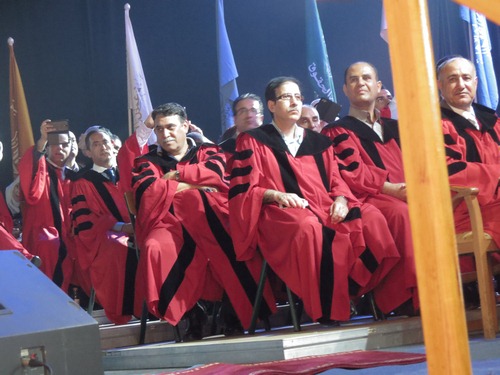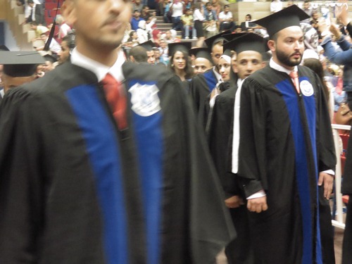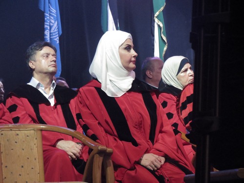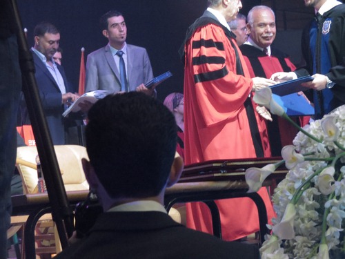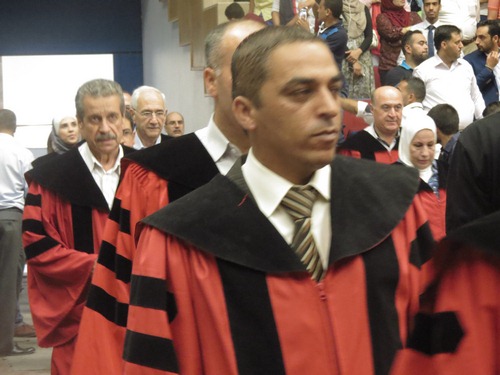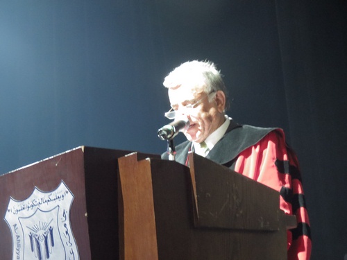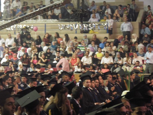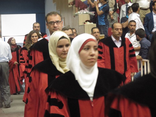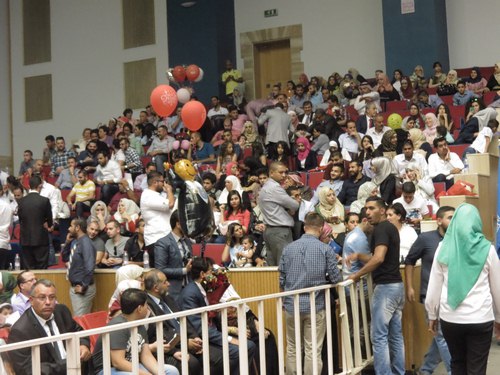 كما وألقى عميد شؤون الطلبة الدكتور مفيد حواشين كلمة هنأ فيها الطلبة الخريجين وذويهم مرحباً بهم في يوم من أيام الحصاد والخير والعطاء يوم يرى فيه الوطن نخبةً من شبابه وهي تشكل معاول بناء في مختلف أرجائه مضيفاً أن الجامعة تسعى للنهوض والارتقاء بأبنائها تربوياً وعلمياً وصقل حياتهم الجامعية بكافة الوسائل الممكنة، وأن هؤلاء الطلبة الخريجين سيكونون دائماً المثال والقدوة الحسنه في الأداء والتميز وعلى قدر من المسؤولية مزودين بالعلم والمعرفة لخدمة وطنهم ومجتمعهم.