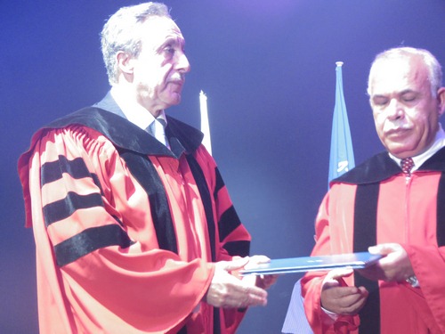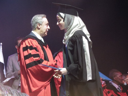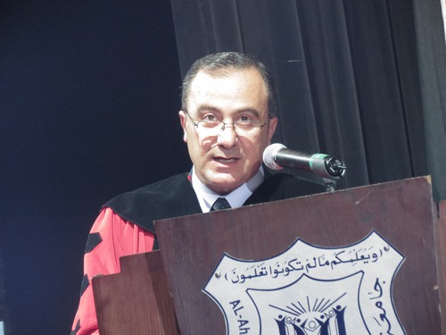 وألقى الدكتور صادق حامد رئيس الجامعة كلمة في الاحتفال قال فيها أن الجامعة تزهو اليوم بتخريج كوكبة من خريجيها فهم بناة المستقبل وحاملي الأمل بعد أن تم تزويدهم بالمعرفة والعلم وأسباب الحكمة، وأن ما يزيدنا فخراً وزهواً في هذه المناسبة هو تزامنها مع احتفالات الجامعة بمرور خمسة وعشرين عاماً على تأسيسها، فهي أول جامعة خاصة أنشئت عام 1990 بمبادرة جريئة وحكيمة من الدكتور أحمد الحوراني مؤسس الجامعة والذي كان يحلم بنقلة نوعية في مجال التعليم العالي فكان فكراً نيراً أضاء بحكمته مسيرة كل من التحق بها من العلماء والأكاديميين والطلبة. وأضاف أننا في الجامعة نزهو بثلة من العلماء الأجلاء الذين أثروا مسيرة الجامعة من أمثال الدكتور ناصر الدين الأسد رحمه الله، منوهاً في كلمته بالجهود المميزة التي يبذلها رئيس وأعضاء مجلس الأمناء في دعم مسيرة الجامعة، مؤكداً أن الجامعة غدت صرحاً علمياً متميزاً اكتسب الثقة والاحترام والتقدير محلياً وعربياً ودولياً بفضل المستوى المتميز لخريجيها الذين انتشروا في أكثر من سبعين دوله فأصبح منهم القادة والعلماء والخبراء في شتى القطاعات وهذا لم يكن ليتحقق إلا بفضل جهود أعضاء الهيئتين التدريسية والإدارية الذين اخذوا على عاتقهم أمانة المسؤولية.