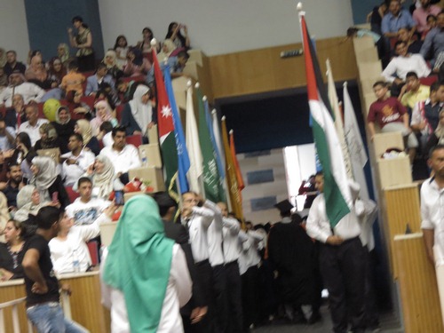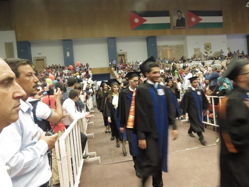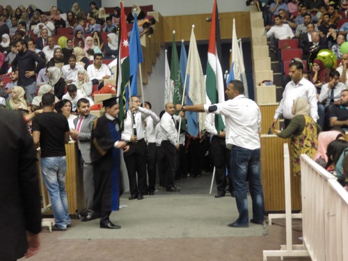 مبيناً أن الجامعة تواكب وبشكل مستمر التوجيهات الملكية السامية بضرورة إعادة النظر في الخطط والبرامج الدراسية للجامعات وربطها بحاجة سوق العمل وكذلك مواكبة كل ما هو جديد بهدف الارتقاء بمستوى الخريجين وزيادة فرصهم التنافسية، وفي نهاية كلمته قدم أسمى آيات التهنئة والتبريك للطلبة الخريجين وذويهم داعياً الله عز وجل أن يحفظ الأردن وطناً وشعباً ودولةً تحت ظل راعي المسيرة جلالة الملك عبد الله الثاني بن الحسين المعظم.