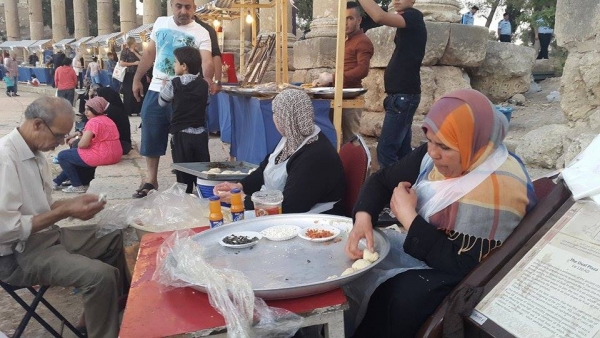 خلال مهرجان جرش ... ومن بين اعمدتها التي تحاكي التاريخ، برزت نشميات بلدي تحاكي الاصالة والعراقة.. بمساعدة برنامج (إراده) الذي يعمل على دعم وتعزيز التعاون، بتوفير المكان للبيع والدورات التدريبية والتأهيلية لكيفة التعامل مع المشتري والمستفيد..