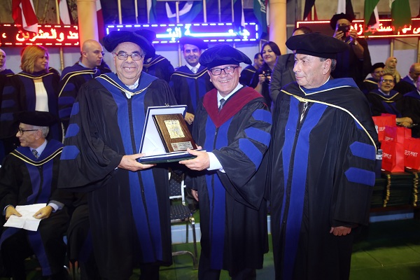 رعى أ.د. مروان المولا، رئيس جامعة البترا، وعلى مدى يومين، حفل تخريج الفوج الحادي والعشرينمن طلبة الجامعة،للفصل الدراسي الثاني من العام الجامعي 2014/2015، حيث توجه بالتهنئة والتبريك للخريجين وذويهم، مبيناً أن احتفاء الجامعة بهذه الدفعة هو مناسبة للفرح وفرصة للاعتزاز والفخر بإعدادهم ليكونوا قادرين على البناء والمنافسة والإنجاز،موضحاً أن الفترة التي مرّت من عمر الجامعة ليست مجرد سنوات تتوالى، ولكنها عمر من الخبرات المتراكمة والجهد المبذول والتخطيط الدائم والتطوير المستمر، أدخل الجامعة الى عالم الفرادة والتميز،