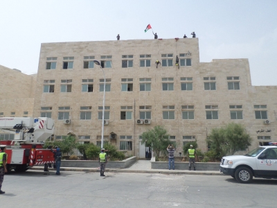 قامت مديرية دفاع مدني البلقاء وبإسناد من مديرية إنقاذ وإسناد الوسط وبالتنسيق مع الجهات ذات العلاقة بتنفيذ فعاليات تمريناً لحادث وهمي مفترض على مبنى مستشفى الامير حسين بن عبد الله الثاني / لواء عين الباشا