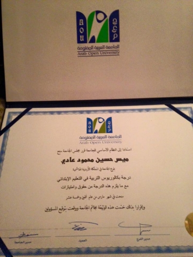 تتقدم فاتن محمود عادي... من الاخ حسين محود عادي ( ابومحمد ) بالتهنئة والتبريك بمناسبة تخرج ابنته الغالية ميس من جامعة عمان المفتوحه وحصولها على البكالوريوس