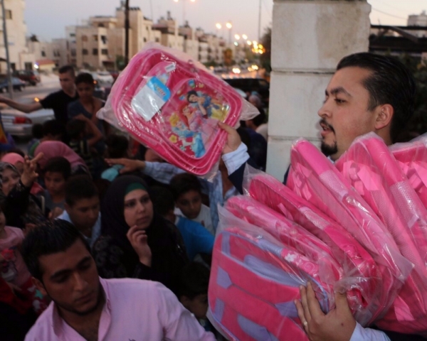 في خطوة رائدة ومتميزة تستحق التعميم والتوسع نفذتها جمعية التواصل الخيرية يوم امس الجمعة والمتمثلة باقامة مهرجان الحقيبة المدرسية والذي جمع اكثر من 350 طفل وطفلة مع امهاتهم في منطقة النزهة والهاشمي والقصور وضاحية الامير حسن ومخيم الحسين حيث تم توزيع حقائب مدرسية للاطفال تحتوي على القرطاسيات ومستلزمات الدراسة مما زرع الفرحة والسعادة على وجوه التلاميذ واولياء امورهم مثمنين هذه الخطوة المتميزة والرائدة والتي جاءت في وقتها ومحلها ومكانها وزمانها .