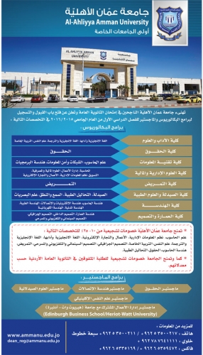 استمرارا لريادتها جامعة عمان الاهلية تعلن عن اهم تخصصاتها
