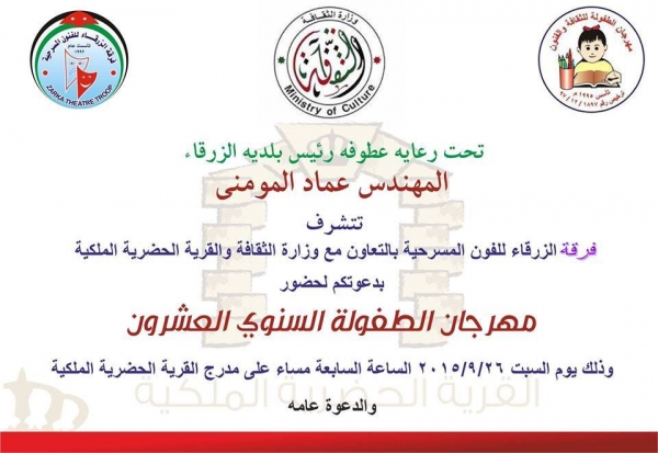 الفعالية المشار اليها برعاية رئيس بلدية الزرقاء المهندس عماد المومني متاحة امام الجمهور الاردني بكل محافظاته ومجانا لكل اطفال الاردن .