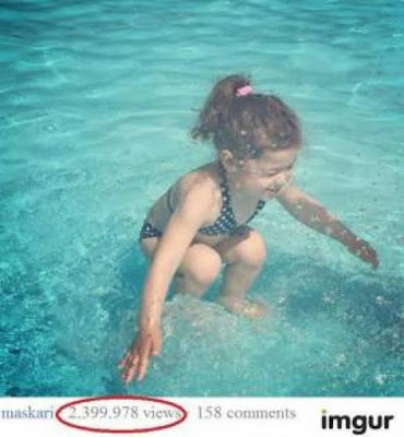 وفيما قال البعض إن الطفلة تسبح تحت الماء، أكد آخرون أنها التقطت لحظة قفز الطفلة في حوض السباحة.
