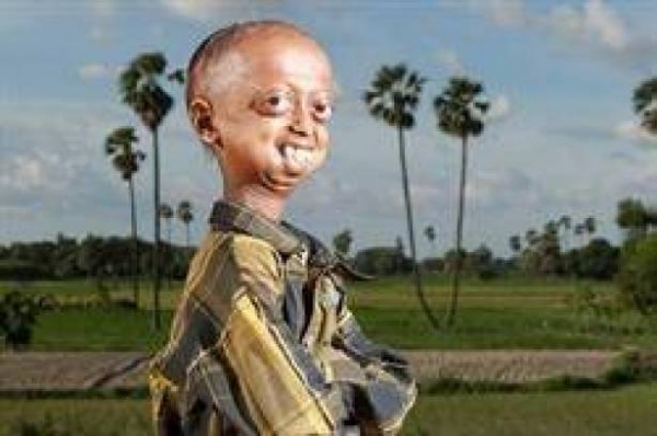 يبلغ طول قامة هذا المراهق 1.2 متر ووزنه 12.5 كيلوغرام فقط. وبدا أن الطفل الذي تسكن عائلته على طرف ممباي كان سليما معافى صحيا خلال السنة الأولى ونصف السنة من عمره. ثم لاحظ الوالدان ظهور بقع غامقة وفاتحة اللون على جلد ابنهما.