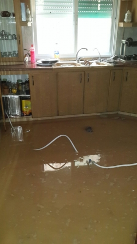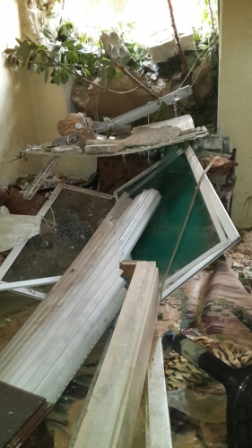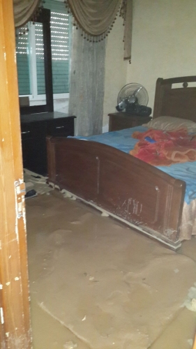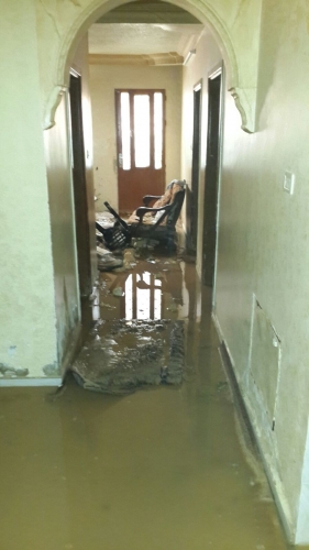 وتضررت التسوية من العمارة بشكل كامل بسبب الانهيار وداهمت مياه الامطار جميع غرفها .