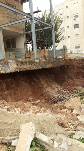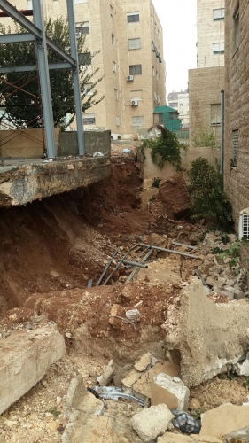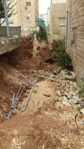 انهارت جزء من عمارة سكنية في ضاحية الاقصى شارع يحيى بن منده غرب عمان ظهر اليوم.