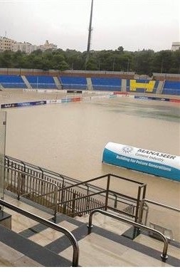 دمرت مياه الامطار الخميس، ارضية استاد عمان الدولي في العاصمة عمان، وتشكلت الكثير من البرك داخل مدينة الحسين للشباب، جراء الامطار التي تساقطت منذ صباح اليوم على اجزاء من المملكة