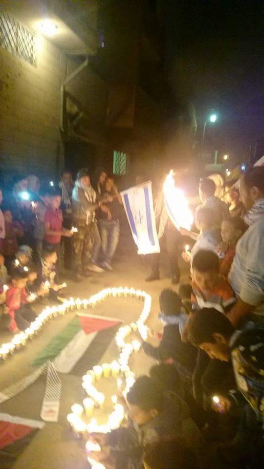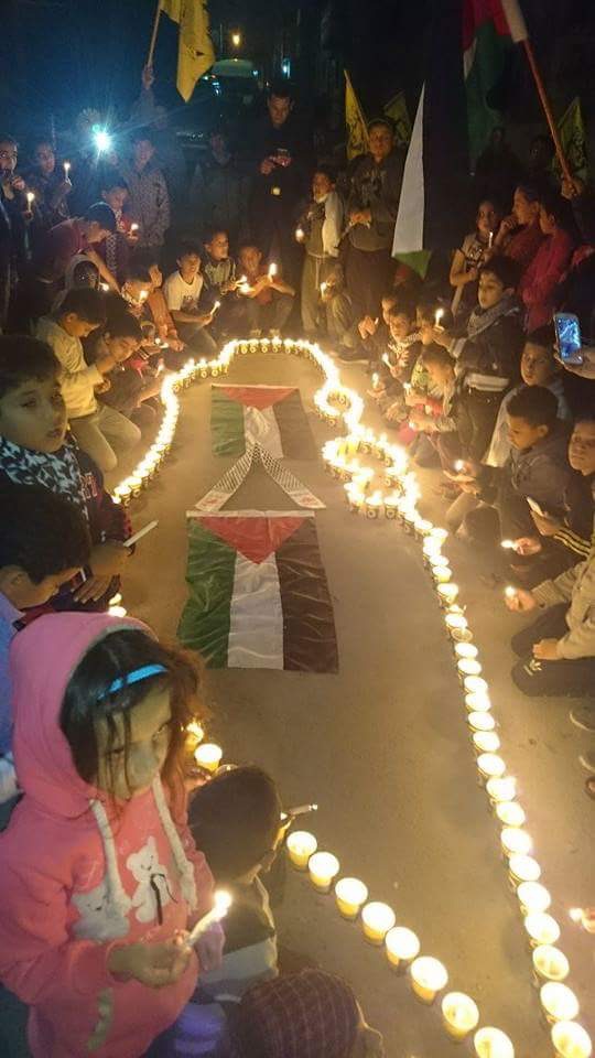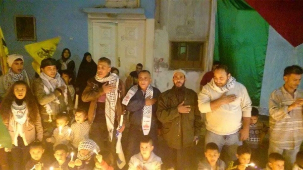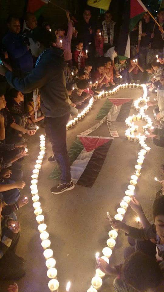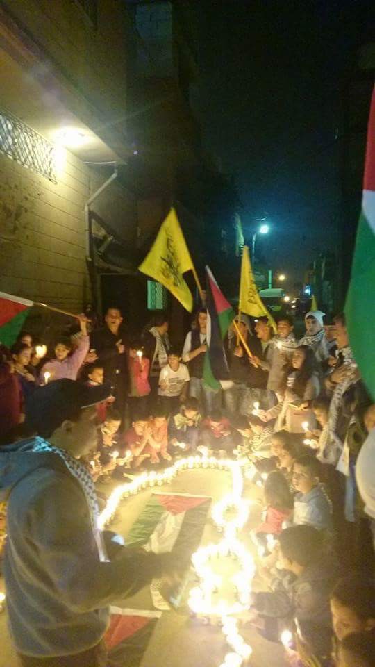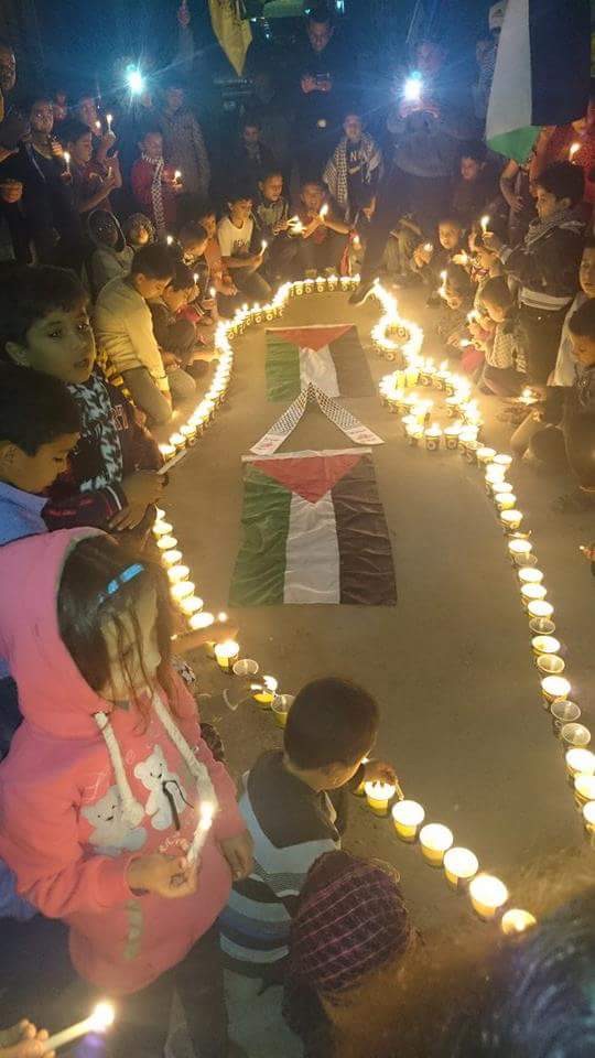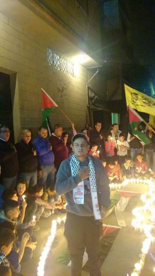 وجاءت مشاركة مخيم العودة عبر نشطاء ومهتمين بالاضافة الى اللجنة الشعبية لدعم المقاومة للتعبير عن تضامنهم مع الشعب الفلسطيني الشقيق ومشاركة للمجتمع الدولي الرافض للاحتلال، حيث تضمنت الفعالية الى جانب غناء نشيد موطني هتافات وكلمات واهازيج وطنية فلسطينية، هذا الى جانب تقديم لوحة فنية للشقيقين حسن ومحمود الشربيني، والمتمثلة برسم خارطة فلسطين بالشموع وضع العلم الفسطيني بداخلها، بمشاركة اطفال وممثلي المجتمع المحلي.