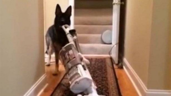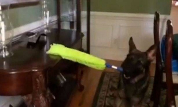 نشر موقع فيديو لكلب من نوع الراعي الالماني "German Shepherd" يساعد صاحبته في الأعمال المنزلية.