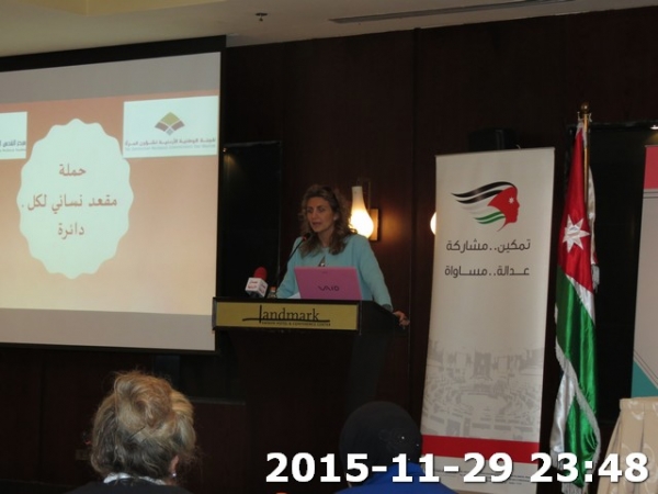 عقد المؤتمر الصحفي الخاص بعرض نتائج حملتي اللجنة الوطنية لشؤون المرأة ومركز القدس لدراسات السياسية للارتقاء بتمثيل المرأة في مجلس النواب الأردني اليوم الاثنين 30/11/2015 وذلك تزامنا مع اقتراب موعد إقرار مجلس النواب لمشروع قانون الانتخاب لعام 2015.