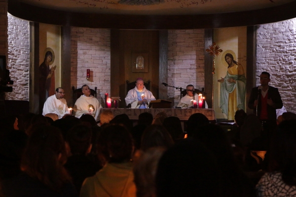 وترأس المطران الجديدالقداس الاحتفالي بمناسبة عيد السيدة مريم العذراء، بالتزامن مع افتتاح قداسة البابا فرنسيس للسنة الجديدة: يوبيل سنة الرحمة. ورحب الاب بدر بسعادة السفير البابوي، وقدم له التهنئة على اختيار قداسة البابا له مطراناً وسفيراً بابوياً لدى المملكة ولدى العراق الشقيق.