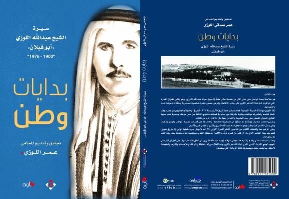 "بدايات وطن" هو العنوان الذي اختاره مؤلف سيرة الشيخ عبدالله اللوزي"أبو قبلان"، حفيده المحامي عمر اللوزي لجده الذي ولد مطلع القرن العشرين وتوفي منتصف السبعينيات من القرن الماضي.