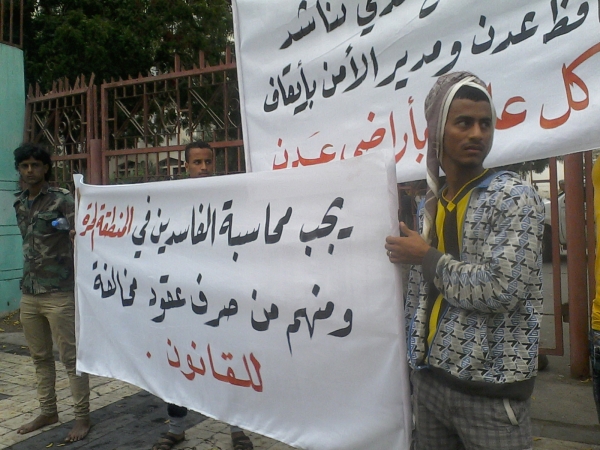 • منسق الوقفة راشد قاسم محمد حازب رئسي مؤسسة البيئة والقانون التنموية : نظمت هذه الوقفة بالتنسيق مؤسسة المملاح ومكتب البيئة من التنديد بظاهرة الاغتصاب الذي يصير بأراضي المحمية المملاح والتي تعتبر صرح تاريخي ،إذ تتم عملية دفن عشوائي لحضارة عدن من أشهر ونحن هنا وفي هذا التاريخ بالتحديد نناشد محافظ عدن "عيدروس الزبيدي ومدير أمن عدن شلال شائع" للحد من هولاء العابثين وإيقاف تمددهم ،وخاصة أن الأمر لا يقف عند حدود عملية البسط بل ن العابث والباسط سوف يردم وسوف يقوم ببيع هذه المساحة وهذا حقيقية العبث بذاته .
