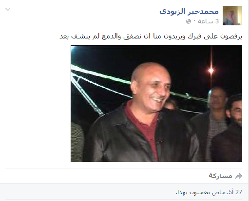 ووصف الزيودي في تغريدة ثانية نشرها اليوم السبت في احدث معارضة لاقامة هذه الاحتفالية:" يرقصون على قبرك ويريدون منا ان نصفق والدمع لم ينشف بعد"