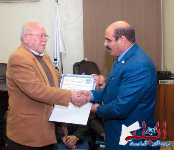 وكرم رئيس الاتحاد الشاعر عليان العدوان مجموعة من أعضاء الاتحاد المبدعين وهم : أ. عايد ابو فردة، أ. عبد الفتاح الدراويش، د. شوكت الدراويش، أ. حسن خليفة، أ. أحمد الفسفوس، أ. صبري محمد موسى.