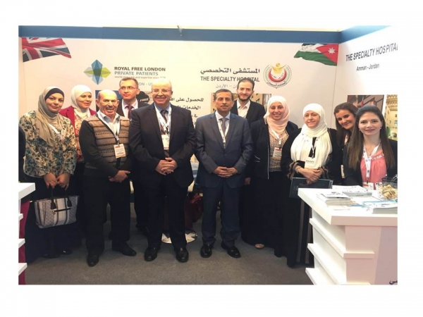 أكد الدكتور فوزي الحموري مدير عام المستشفى التخصصي خلال مشاركة المستشفى التخصصي في فعاليات معرض ومؤتمر الصحة العربيخلالالفترةمن25إلى28كانونالثاني2016في دبي والذ تم افتتاحه من قِبلسموالشيخحمدانبنراشدآلمكتوم-نائبحاكمدبي، أكد علىضرورة تواجدالجانب الاردني بشكل اكبر في هذا المعرض نظرا لأهميته في دعم وتعزيز مكانة القطاع الطبي الاردني على الساحتين الاقليمية والعالمية من خلال استغلال الميزة النوعية التي يتمتع بها الاردن من وجود اماكن العلاج الطبيعي ووجود كوادر طبية ماهرة ومستشفيات تقدم اجود الخدمات الطبية، مع وجود شركات متخصصة بالصناعات الدوائية تحتل منتجاتها مكانة مرموقة في الاسواق العالمية ، حيث يعتبرمعرضالصحةالعربيالمعرضالإقليميالرائدفيقطاعالرعايةالصحيةفهومنأهموأكبرالمعارضالتيتعقدفيالمنطقةويعدثانياكبرمعرضفيالعالمحيثيشاركفيهاكثر من4000عارضمنأكثرمن163دولةحيثويستضيفمايزيدعن115ألفزائرمنقادةقطاعالرعايةالصحيةعلىالمستوىالدولي .