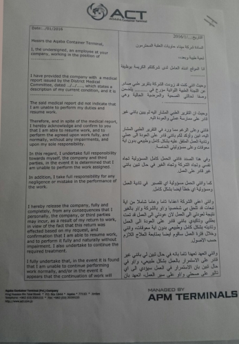 ويتابع ايوب بعد القرار حصلت خلافات بين اعضاء الادارة ادت الى وقف القرار ومحاولة الالتفاف عليه وهنا يأتي دور المستشار القانوني في شركة ميناء الحاويات الذي حاول نزع قرار من وزارة الصحة يصب في مصلحة الشركة وحسم النتيجة الطبية (قادر او غير قادر) لتعتمد الشركة بالتالي على المادة 21 التي تعطيها حق انهاء خدمات العاملين،، ولكن لم يفلح ميناء الحاويات في هذا المسعى ولم يصل الى هدفه حيث ارسلت وزارة الصحة كتابا تؤكد من خلاله ان هذا القرار ليس من صلاحياتها وهو من صلاحيات مؤسسة الضمان الاجتماعي.