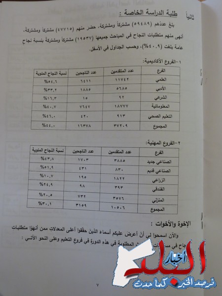 وتابع ان الوزارة عكفت على المدارس التي تدنت فيها نسب النجاح في الدورات السابقة وقامت بتشكيل لجان لدراسة واقعها وسبل تحسين ادائها، كما قدمت الدعم الفني والاداري لها.