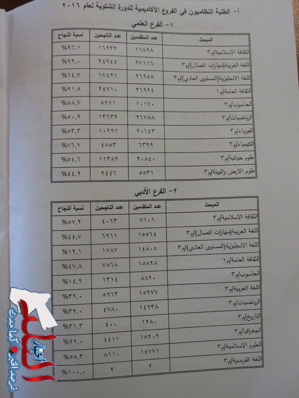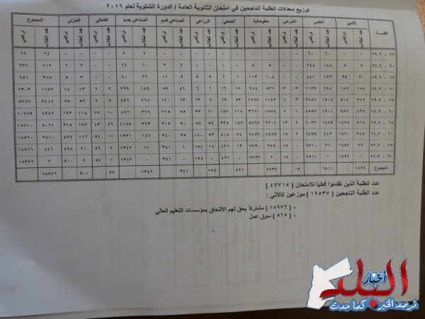 ويشار الى ان عدد المشاركين في امتحان شهادة الدراسة الثانوية العامة لعام 2016 في الفروع الاكاديمية والمهنية كافة (158819) مشتركا ومشتركة، حضر منهم (128052) مشتركا ومشتركة التوزيعات مرفقة بالصور