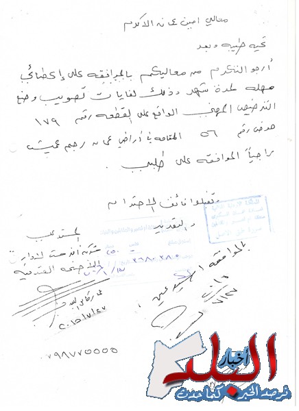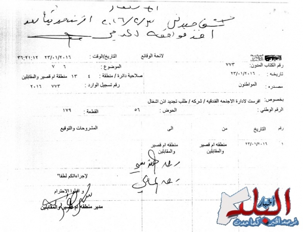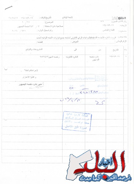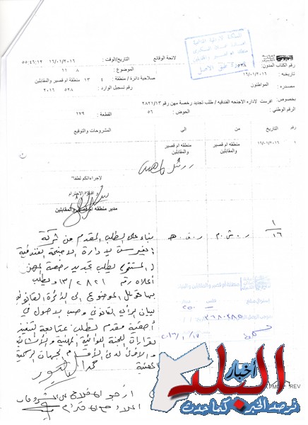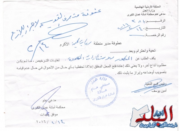 -يوم الاحد 14/2/2016 قمنا بمراجعة مدعي عام محكمة امانة عمان الكبرى الموقره وحصلنا على كف طلب خاص بالمخالفة التي تم على اساسها اغلاق المبنى بالكامل وذلك لغايات الترخيص موجه الى قسم الرقابه الصحية في امانة عمان الكبرى الموقره وبناءً عليه قمنا بمراجعة قسم الرقابة الصحية في امانة عمان لاعادة فتح المبنى وازالة الشمع الاحمر ومباشرة تجديد التراخيص لكن لم نلقى اي تجاوب من طرفهم ، على عكس الاجراءات المتبعة بحق جميع المحلات والمنشآت والمباني في المملكة حيث يتم فتحها مباشرة بعد الحصول على كف الطلب ، من بعدها توجهنا الى متصرف لواء القويسمه وعطوفة محافظ العاصمة لمحاولة اعادة فتح المداخل وازالة الشمع الاحمر من خلالهما، لكن كانت الاجابة بالعودة الى قسم الرقابة الصحية في امانة عمان حيث انهم هم المعنيون بذلك ، وقمنا بمراجعة قسم الرقابة الصحية مرة اخرى ولم نلقى اي استجابة لطلبنا .