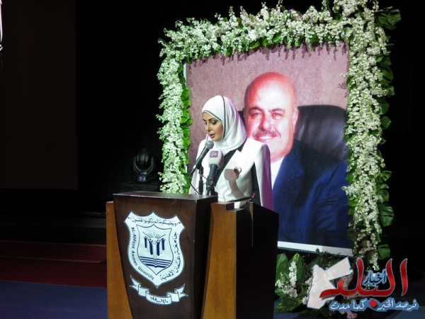 وقد قدمت الحفل مديرة دائرة العلاقات الدولية والعامة في الجامعة السيدة إيناس الحوراني ابنة المرحوم وتألقت بعمل مقابلات حصرية مع أصدقاء المرحوم واستذكار الماضي الجميل مع المرحوم.