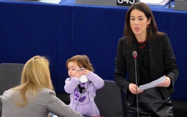 وبكلمة "ماما" دخلت فكتوريا ذات الثمانية عشر شهراً المعترك السياسي لتصوّت في البرلمان الأوروبي، فهي ابنة هذا البرلمان منذ أيامها الأولى، ترعرعت على مقاعده، فيما شركاؤها في اللعب كانوا أعضاء البرلمان مثل والدتها النائبة ليسيا رونزولي.
