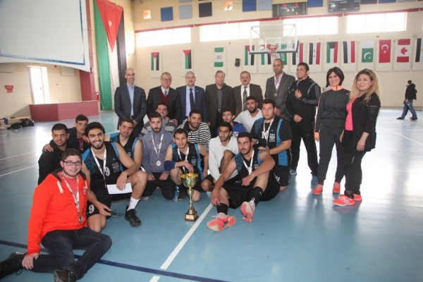 وسلم رئيس جامعة البترا الدكتور مروان المولا الميداليات إلى الفريقين، بحضور رئيس جامعة الأميرة سمية رئيس الاتحاد الرياضي للجامعات الأردنية الدكتور مشهور الرفاعي.