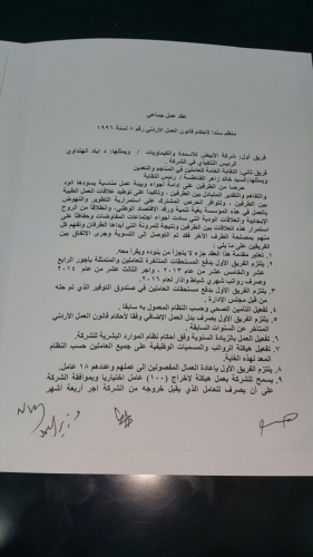 بداية اتوجه بالشكر الجزيل لعمال شركة الابيض للاسمدة والكيماويات ونبارك لهم انجازهم المؤزر لتحقيق مطالبهم من قبل شركتهم لتوقيع الاتفاقيه العماليه وانهاء النزاع العمالي