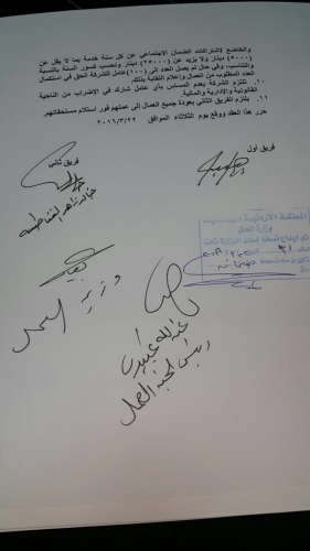 كما نخص بالشكر الجزيل لسعادة رئيس نقابة المناجم والتعدين ونائب رئيس الاتحاد لعمال الاردن خالد الفناطسه ونائبه السبد محمد الحجايا لدعمهم المباشر ولتقديم الدعم اللوجستيكي لانجاح الاضراب الذي تتوج بتوقيع اتفاقية عمالية مشرفة تضمن حقوق العمال والمحافظة على مصدر رزقهم .