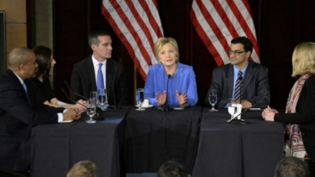 يأتي هذا بينما استفادت هيلاري كلينتون من عملها السابق كوزيرة للخارجية في تقديم رد شامل حول الأحداث، في خطابها حول هجمات بروكسل بجامعة ستانفورد.