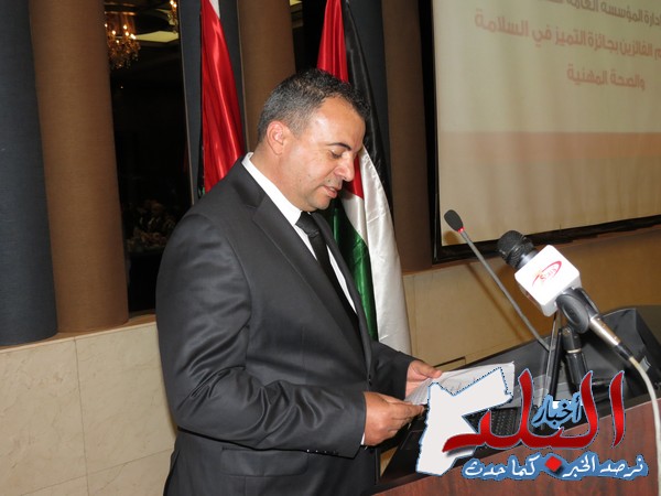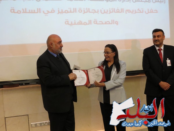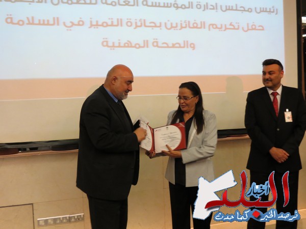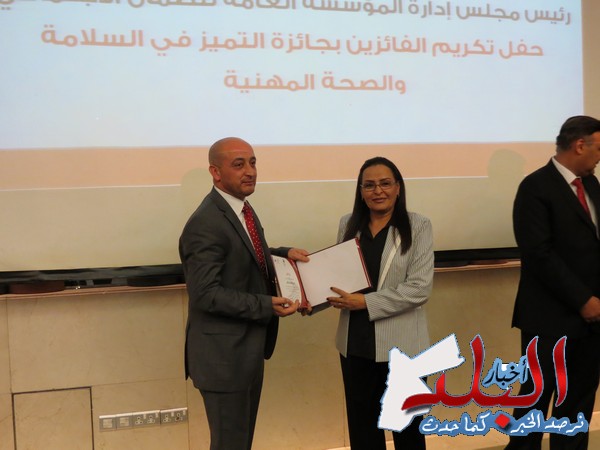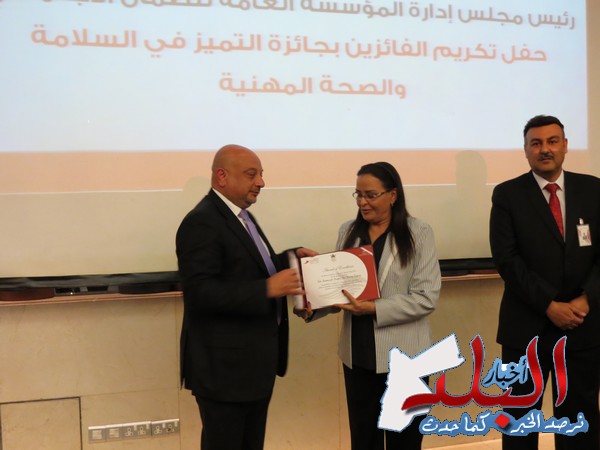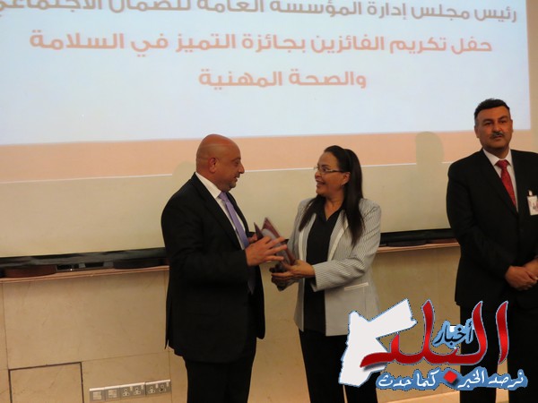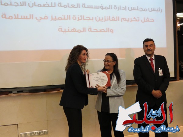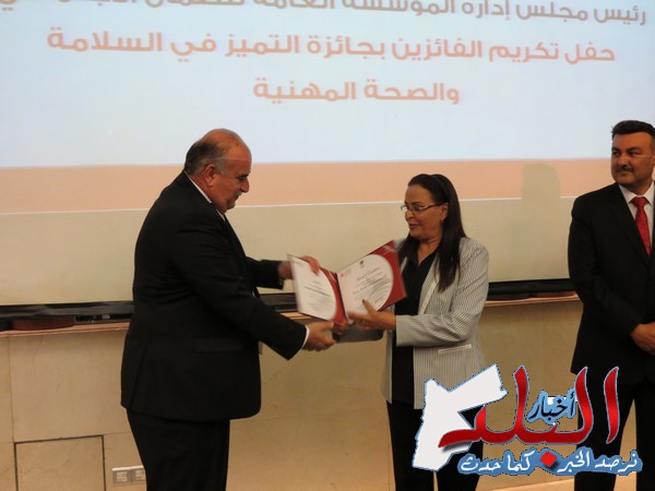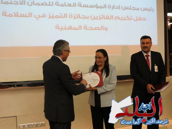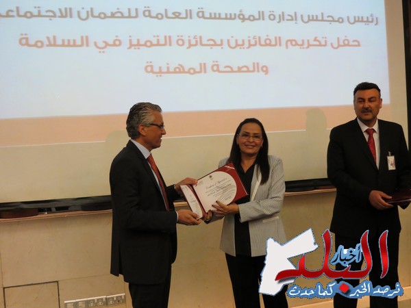 كرمت المؤسسة العامة للضمان الاجتماعي المنشآت الفائزة بالجوائز التقديرية والتشجيعية في السلامة والصحة المهنية لعام 2014 وهي الجائزة التي تم تخصيصها سنوياً لتكريم المتميزين في عدد من المجالات المتعلقة بالسلامة والصحة المهنية من منشآت وأفراد, خلال حفلٍ خاصٍ اقامته المؤسسة بحضور مدير عام المؤسسة ناديا الروابدة مندوباً عن وزير العمل / رئيس مجلس إدارة المؤسسة الدكتور نضال القطامين وأعضاء مجلس إدارتها, إضافة إلى ممثلي عدد من الفعاليات الاقتصادية والعمّالية والنقابية والإعلامية.