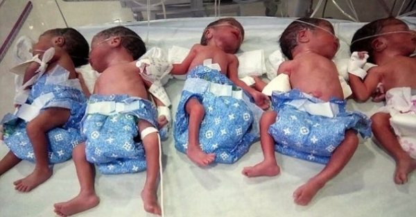 أكد الاطباء انها حالة نادرة جداً، انجاب 5 توائم بطريقة طبيعية.