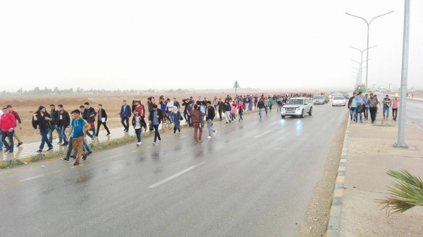 نفذ المئات من طلبة جامعة آل البيت مسيرة دعت لها كتلة االتجديد العربية في الجامعة عصر الأحد 10 نيسان 2016، احتجاجاً على مشكلة المواصلات التي يعاني منها الطلبة منذ سنوات.