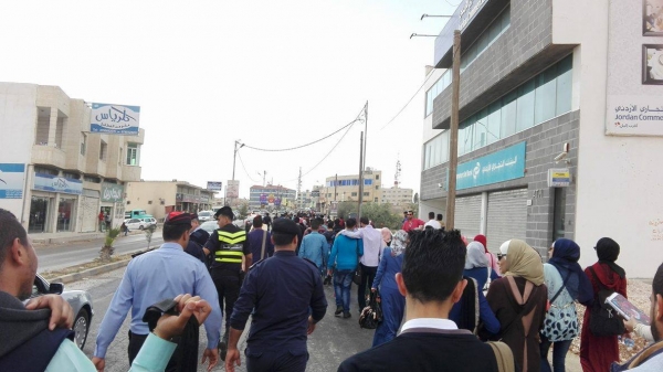 ورافقت الأجهزة الأمنية المعتصمين طيلة خط سيرهم حرصاً على سلامتهم، كما توجه مندوب من محافظ المفرق إلى الطلبة الممشاركين بالمسيرة مبدياً عزم المحافظ التحضير للقاء قريب بين الطلبة وبين هيئة تنظيم قطاع النقل لحل مشكلة المواصلات للجامعة.