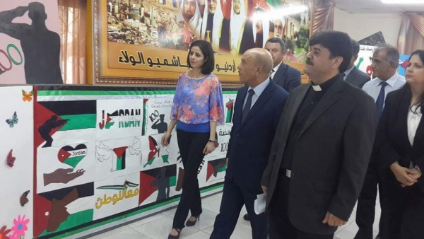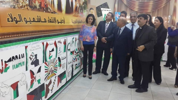افتتح مدير تربية اربد الأولى علي الدويري الجدارية الخاصة التي أقامتها المدرسة الأسقفية العربية وقامت بتصميمها وانجازها المعلمة لورين بدر بمناسبة الاحتفالات بمئوية الثورة العربية الكبرى