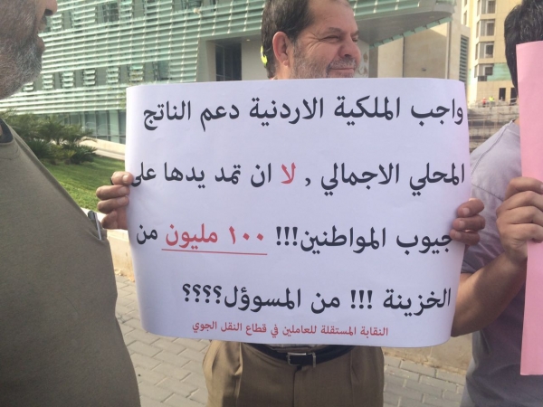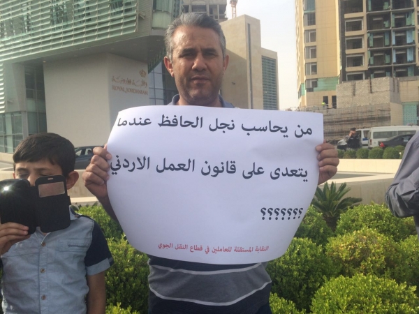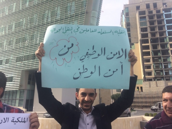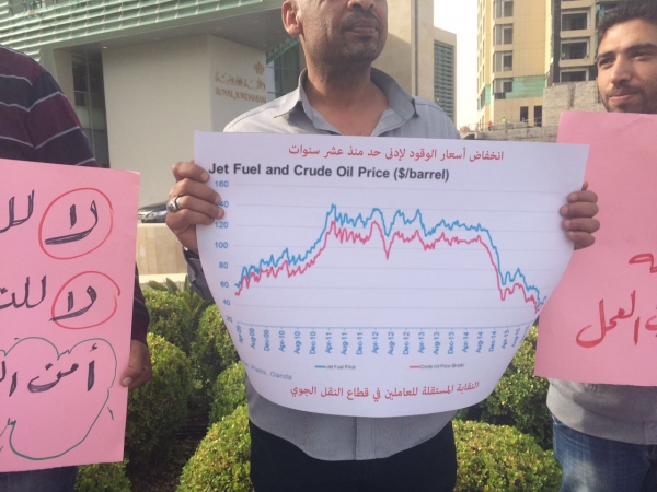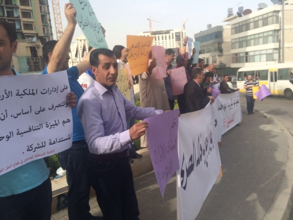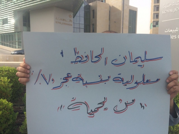 أقامت نقابة نقابة مهندسي ونفني صيانة الطائرات الوقفة الاحتجاجية الرابعة المقامة ضد ادارة رئيس الشركة سليمان الحافظ ونجله وادارته يوم السبت 9/4/2016 من الساعة 4:30 وحتى 5:30 امام شركة الملكية الأردنية للطيران – الدوار الخامس.