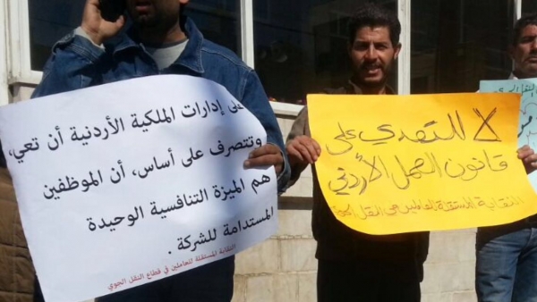 ومن جهة ثانية قال السيد سليمان الجمعاني رئيس اتحاد النقابات العمالية المستقلة لأخبار البلد نحن كنقابة نرسل اليوم من امام موقع اجتماع الهیئة العامه لشرکه الملکيه الاردنيه رسالتنا الخامسه للحکومه التي تعنتت بتمسكها باداره الملكية الاردنيه التي تتحكم بارزاق الموظفين، وتدير الشركة دون استراتيجيا واضحه أو اي رؤية مستقبلية، والتي ترتكز علی أرباح وهميه وبيانات مفبركه .