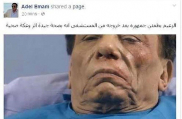 صورة حقيقية ولكن من مشهد تمثيلي، وحساب موثق على "الفيس بوك" ولكن لا يخضع لإدارته ، بات الزعيم عادل إمام ، ضيفاً دائماً على المستشفيات ، يفتتح يومه بمطالعة أخبار إصابته بأزمة صحية حادة، ويتلقى العزاء في نفسه من الأصدقاء مرة على الأقل في الأسبوع .. دون أن يعرف على الأقل مصدر الشائعة .