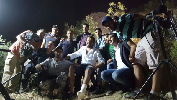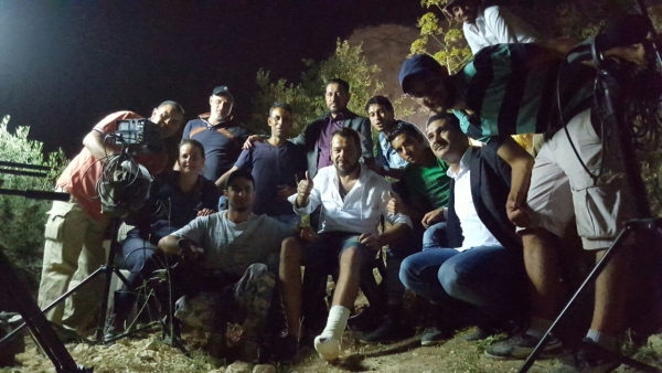 ووسط اجواء المحبة التي تغمر فريق العمل فقد اصر القائمون على التصوير على إعادة الرياحنة لذات المكان الذي سقط منه والتقاط الصور التذكارية معه وقد وضع قدمه في الجبص