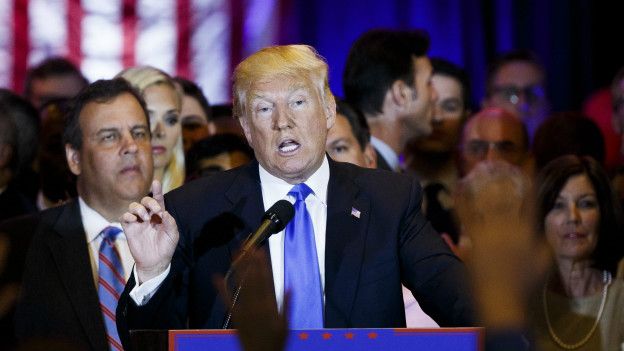 ووصف ترامب نفسه بأنه "المرشح المفترض" للحزب الجمهوري بعد انتصاره في ولايات كونيتيكت وديلاوير وماريلاند وبنسيلفانيا ورود أيلاند.